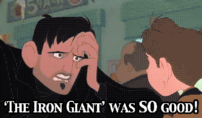 Recommendation time! Awww yay! It’s ‘The Iron Giant’, one of my favourite cartoons ever. How could it not be? This film is so warm and lovely. There’s no possible way you could hate this film, it’s not allowed. If you ever, ever, ever meet someone who tells you they do…