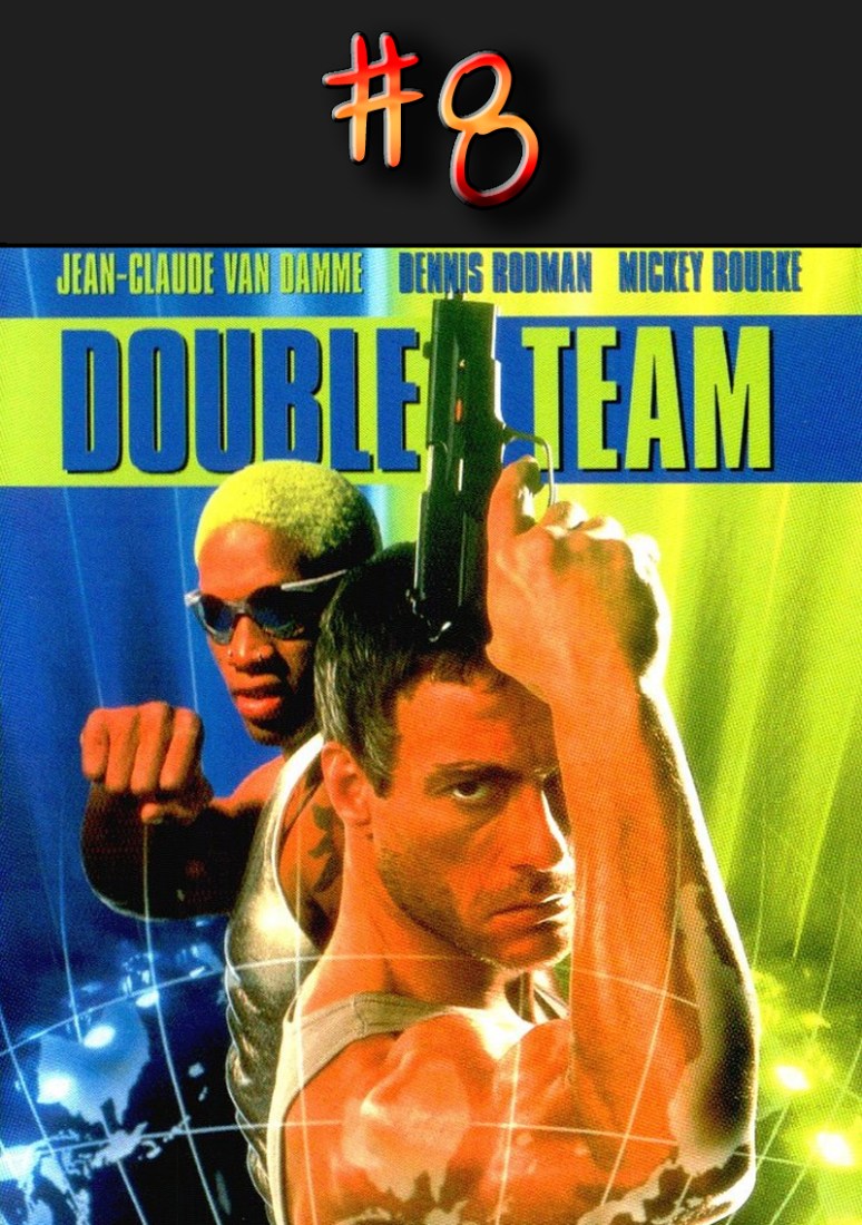 So Van-Damme plays a perfect person who kills deserving bad-guys and loves his wife endlessly. He has nothing to learn and he never does, other than how to get his wife back after she’s been kidnapped. Great character development there. Dennis Rodman helps him out with a few extra guns and lot of comic relief.