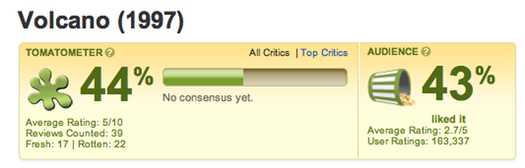 “The coast is toast”? “The coast is toast”? Ay ay ay. And to make matters worse, the movie’s called Volcano. For those who need to be spoon fed, there’s even a picture to help you understand. Can you guess what it’s about?