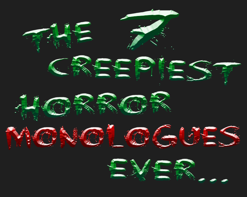 Ah, now we’re getting somewhere. Let’s do that! I’ll grab a handful of stories and speeches, you sit yourself down in a rocking chair with a glass of wine (or brandi, or beer, or…mouthwash…whatever…) and we’ll go through them. I’ll pick 5…no…6…no no…7 horror themed monologues! Yes, that’s it! It’ll be…
