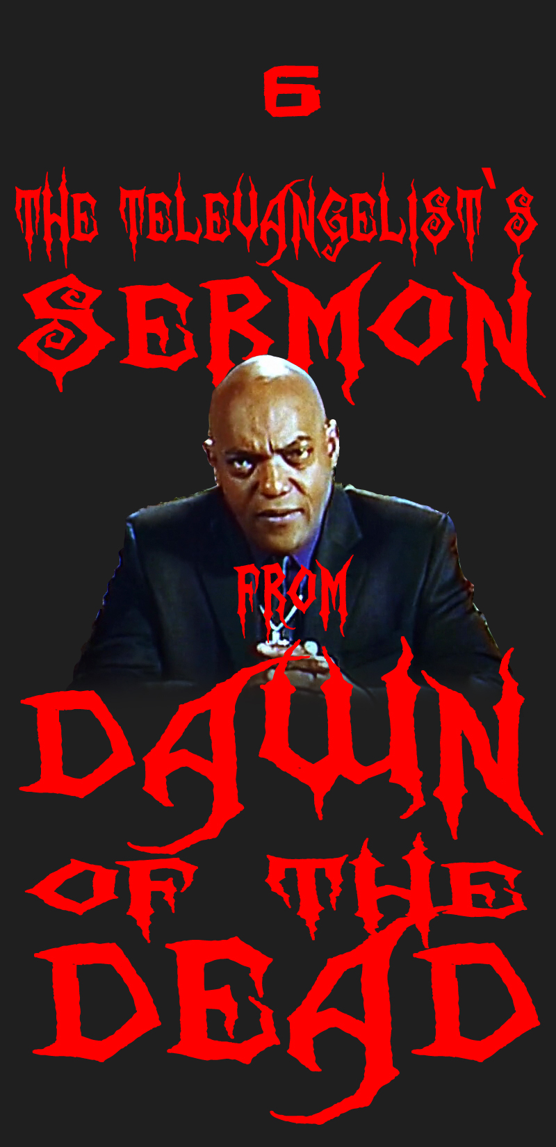 There really isn’t much more too it than that. What works so well about this little speech, though, is the social commentary that it provides. None of what the televangelist is saying has any real world significance or thematic impact on the story. However, he represents both the best and the worst of mankind; the search for answers and the vicious opportunism of providing false ones. The monologue ends with a montage of the characters falling asleep to the sounds of zombies scratching at the walls.